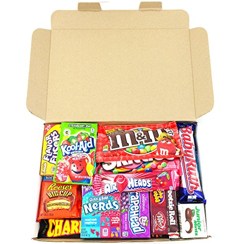 -. Feature : Amerikanischer Süßigkeiten Geschenkkorb - für jeden Geldbeutel und für jeden Geschmack / Amerikanische Süßigkeiten und Schokolade so beliebt wie nie, machen das ideale Geschenk / Ideales Geschenk für Weihnachten, Geburtstag und Valentinstag