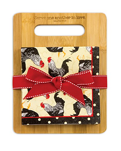 Brownlow Kitchen Bamboo Cutting Board with Scripture and Napkins, Rise and Shine, Black/Red