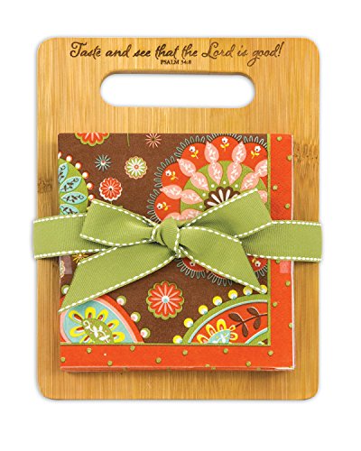 Brownlow Kitchen Bamboo Cutting Board with Scripture and Napkins, Chocolate Paisley, Multicolor