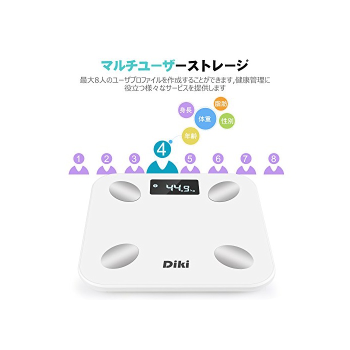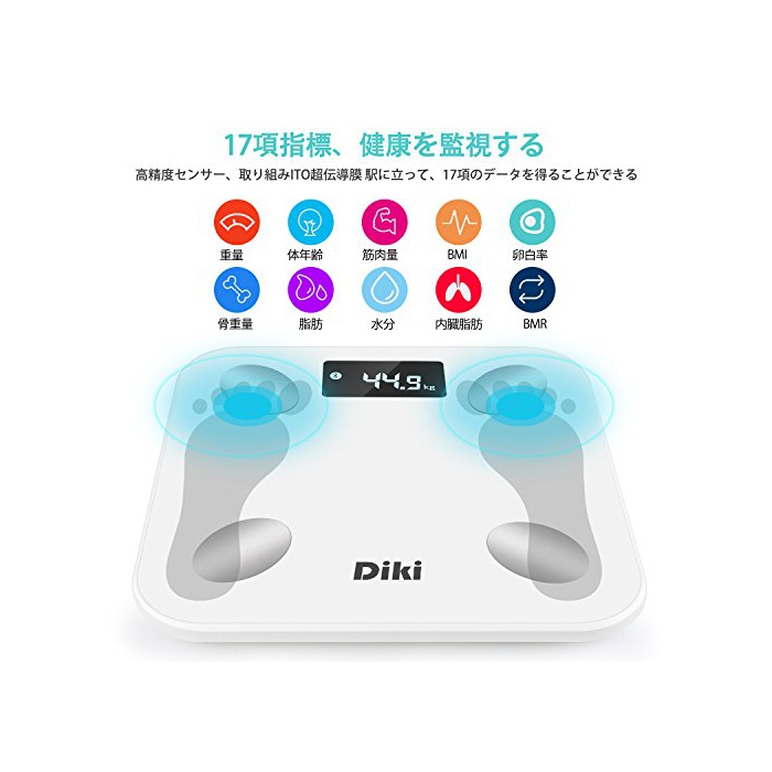 원본상품명: DIKI 重組成計 bluetooth脂肪計 重/脂肪/筋肉量/推定骨量/脂水分/BMIなど測定可能 ホワイト