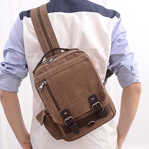 Feature : Material: Premium quality water cotton fabric/canvas; Durable, fashionable, strong enough and carry comfortable. / Interior: cell phone pockets, zipper pocket, iPad sleeve, credential pocket / Exterior: 2 front Zipper pockets, 1 side pocket / Closure Type: Zipper. / Product Dimensions: 9.4W x 3.9D x 11.4H inches/ Weight: 1.1 pound. / Adjustable padded shoulder straps with drop length of 35 inches for carry comfortable. / Muti-pockets design for School, Working Out, Gym Bag, Camping, Fishing, Hunting, Work, Back Packing, Biking Traveling.