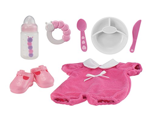 - Feature : The Baby Doll Gift Set from JC Toys is just Perfect! / She is a classic soft bodied baby doll that measures 15" with eyes that really open and close / This Baby Doll gift set includes a new outfit, dress shoes, rattle, baby bottle, plate and even play silverware! / This doll is perfect for everyone 2+ / JC Toys meets and exceeds all Toy Safety Requirements