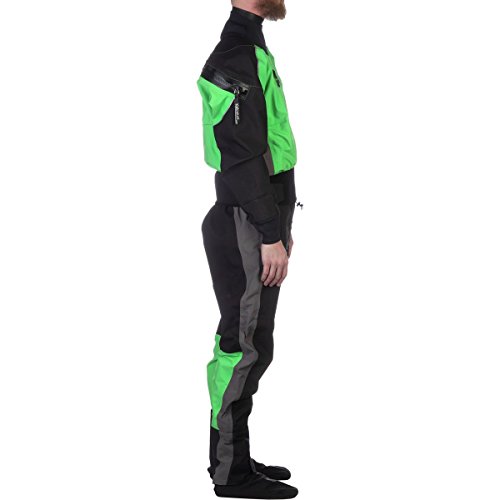 Studio : Kokatat Publisher : Kokatat Product Description The Kokatat Men's Gore-Tex Icon Limited Edition Drysuit should be the first thing you reach for when you're finally packing for your Alaskan kayak/hike escapade. Sixmile Creek drops over 50 feet per mile as it races out of the Chugach Mountains, hammers through three different canyons, has rapids named "Suckhole" and "Jaws," and is nothing but frigid and fresh Alaskan run-off. While the water might be colder than the Yeti's tush, you'll be toasty and dry in this supple and seemingly bomb-proof dryuit. Evolution nylon is just a front for the 3-layer Gore-Tex Pro laminate that keeps you dry, both from the creek water and the anxiety-induced sweat as you hear the roar of the next set of rapids long before you see them. Latex neck and wrist gaskets create watertight seals, and you can trim the neck gasket for a comfortably custom fit. Neoprene neck and wrist over-cuffs ensure water stays away so long as you limit your trimming to the latex (neck) gasket only. Should you end up in the drink and need to crawl out of the creek, Cordura Gore-Tex on the legs, shoulders, and arms keeps you from wrecking your drysuit, while integrated Gore-Tex socks protect all your little piggies from becoming wet toe-sicles. The dual-adjustable overskirt has hook-and-loop compatible neoprene to work with your spray skirt so water stays out of the cockpit. The front relief zipper means you can see a man about a horse without letting your paddling pals see your birthday suit, and the rear-entry design guarantees you'll make a new friend or three. The zippered chest pocket is the perfect place to stash cash, since you know there's a bar within 50 feet of the take-out. 0