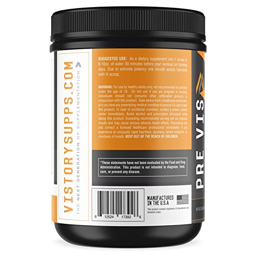 Studio : Vistory Supplements Publisher : Vistory Supplements Binding : Health and Beauty Product Description PREVIS is a supercharged, pre-workout formula designed for a diverse athletic lifestyle. It is made to increase stamina, build muscle, sharpen focus, and quicken recovery times and results. PREVIS is made with 100% natural stimulants so you get a smooth and long-lasting energy kick to propel you through those tough routines. Instead of the hash caffeine powder, we use a blend of Matcha, Green Tea extract, and Green Coffee Bean extract to help you avoid that crash that other formulas will give you. Vistory is dedicated to only the best, most natural ingredients to help you improve your results. Whatever you do, our supplements will accelerate and improve your results. 0