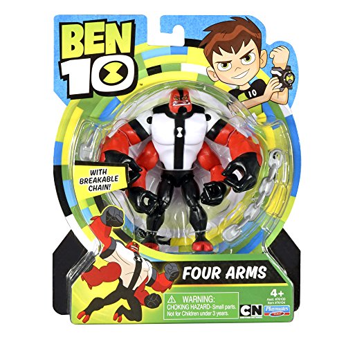 On a road trip with his cousin Gwen and his Grandpa Max, Ben finds an alien watch, the Omnitrix, which allows him to transform into 10 different aliens. Once transformed, Ben takes on the alien's appearance and powers, while always remaining a ten year old boy. The result.the ultimate kid superhero! Ranging in height from 4" to 5" tall, each figure in the assortment is highly detailed and articulated. Most figures also comes equipped with themed accessories for added play! This pack includes Four Arms. He's super strong! Four Arms can lift the heaviest objects and packs the most powerful punches. He creates shockwaves by clapping all four hands together and uses his brute strength to solve any problems!.Feature