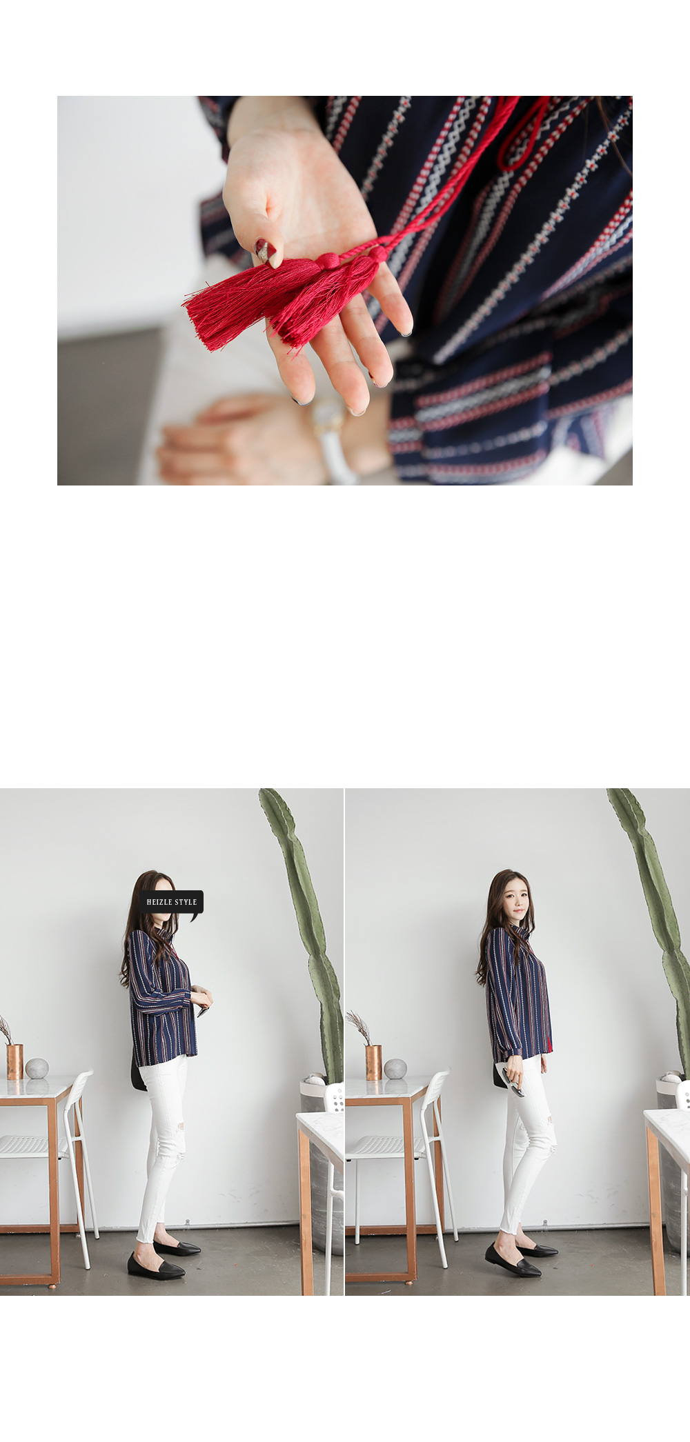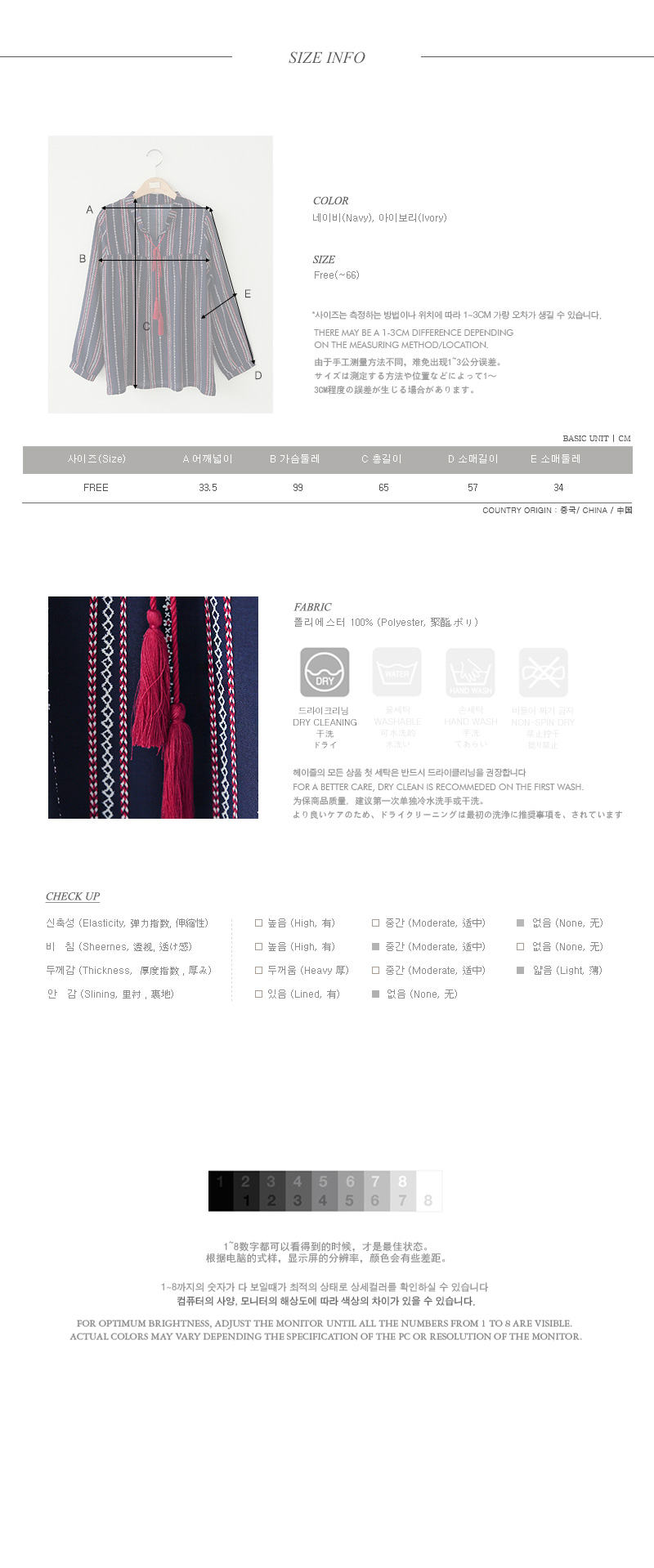 エスニックな感じで楽しむ良いブラン!カラータッセルがもう一度ポイントをくれ〜軽いシフォン感じの素材感でガンジョルギシーズン気軽に楽しむ良いアイテムを与えてくれ^^ルーズなフィット感で快適はもちろん、たるみカバーにも役立つパターンブラウスなんですよ〜ほのかな花のパターンがエスニックなムードを加えてくれ、ハイネックに安定感になり落ち、カラータッセルでポイントを与えて洗練されたルックを完成してみましょう!流行に大きく依存しないデザインで毎シーズン取り出し着る良いブラウスですよ^^ *