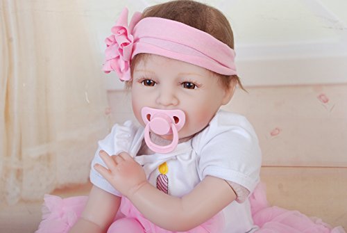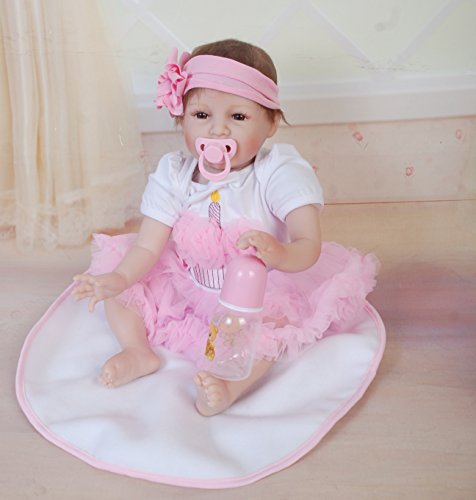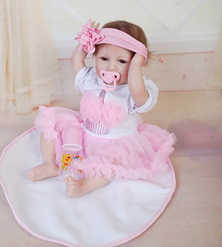 Size:22inch(55cm)Newborn size Weight:about 1.2-1.4KG(2.6-3.0LB).The doll will arrive with a magnetic pacifier and a feeding bottle to fit the mouth.