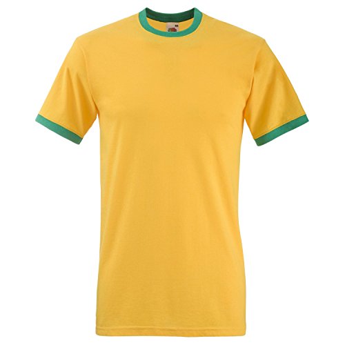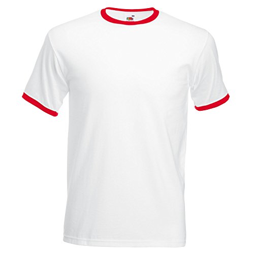 -. Binding : Apparel -. Brand : Fruit of the Loom -. Department : mens -. Feature : Short sleeve Ringer T-Shirt. / Cotton/Lycra® rib crew neck with taped neckline for comfort. / Produced using Belcoro® yarn for a softer feel and cleaner P.R.Inting process. / Fine knit gauge for enhanced P.R.Intability. / Weight: 160-165g/m². -. NumberOfItems : 1 -. ProductGroup : Apparel -. ProductTypeName : SHIRT -. Title : Fruit Of The Loom Mens Ringer Short Sleeve T-Shirt