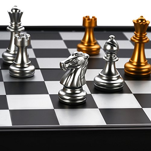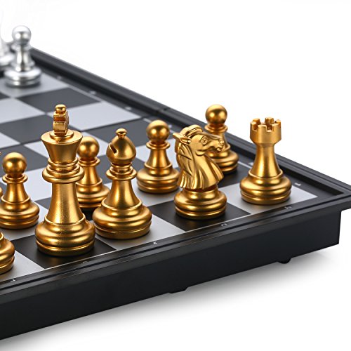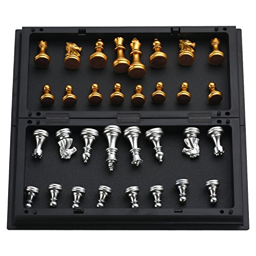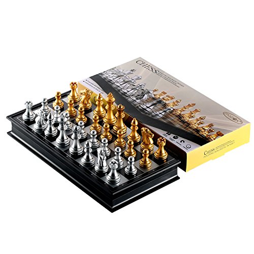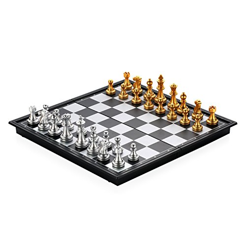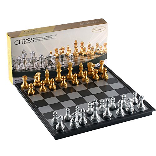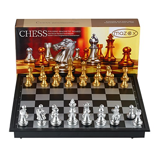 Studio : MAZEX Publisher : MAZEX Binding : Toy Product Description Mazex beautiful little magnetitc travel chess set features gold and silver chess pieces that look really sharp against the black and gray chess board. You will find the size of this travel set ideal for taking on trips whether it's on a long vacation or just to school and back. It's light and portable and can be easily stored away in a suitcase or backpack yet large enough for a good game of chess anywhere.