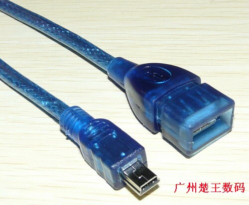 Transparent blue bold short USB female pairs MINI 5P USB female adapter cable car turn T ports