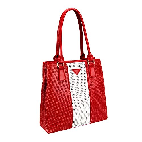FASH Dual-Color Weekender Style Shoulder Handbag,Red and White,One Size