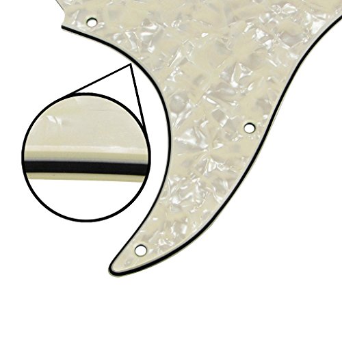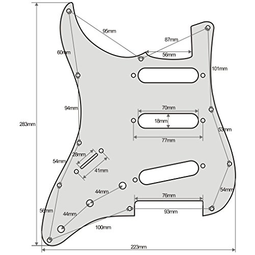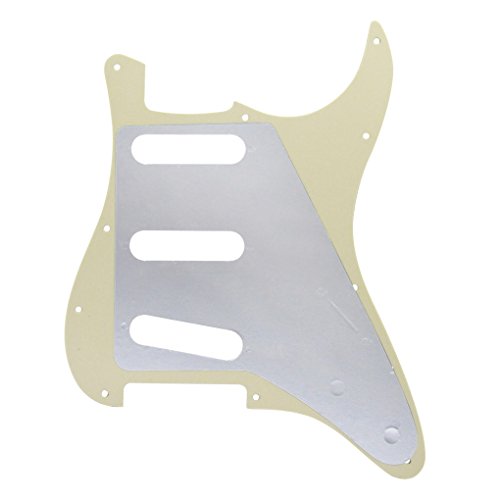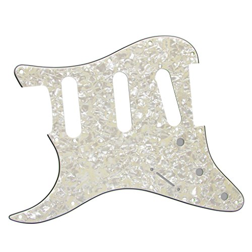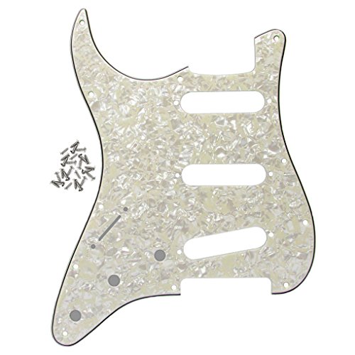 Specification: Item: Fender Strat style Left handed guitar pickguard with mouting screws. Style: SSS(single/single/single coil) style pickguard; 11 screws holes in the side of pickguard. Material: Pickguard is made of 1ply celluloid and 3ply PVC plastic material. With pure aluminum foil shield. Color: Aged Pearl Cream/Black/Cream. With protective film on the surface, while using please split it off. Note:Item's color might be different from the picture because of the aberration.