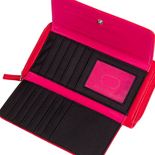 This fashionable and functional Urban Organizer Wallet by Kenneth Cole Reaction holds all of your daily needs. The front flap features a snap closure that will keep the 12 credit card slots, 2 slip pockets, and ID window w/ thumb glide securely in place. Zip open the main compartment to reveal an additional 6 card slots, 3 bill pockets, and a large section that's divided by a zippered coin pouch. Stay versatile and drop this wallet in your bag or carry it around as a clutch. Measures 8" x 4.25" x 1.5".