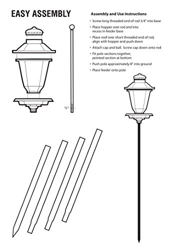 -. Feature : Easy to fill and clean / Includes a 6-feet steel pole to mount feeder / 11-Pound mixed seed capacity / Excellent addition to any yard or garden / Fully assembled