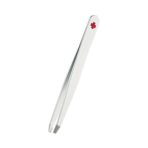Rubis Satin White with Red Swiss Cross Slanted Tip Tweezer