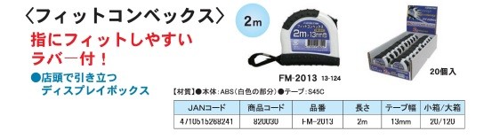 【商品名】(業務用12個セット) CK フィットコンベックス/メジャー 【長さ:2m】 ラバー付き 13-124 FM-2013 〔DIY用品/大工道具〕