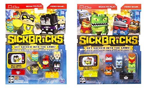-. Binding : Toy -. Brand : Sick Bricks -. EAN : 0636655996407 -. Feature : Bundle: 2 pack of 5 Sick Bricks figures (includes 2 Team Bricks and 1 Instruction Sheet) - total of 10 Sick Bricks figures! / Get sucked into the game with this Sick Bricks bundle of 10 figures for you to battle against the evil Omega Overlord to save Sick City! / Beam your figures into the FREE Sick Bricks game using your smartphone or tablet camera to uncover their unique combat abilities. / Need more powers? Mix and match your real world Sick Bricks body parts to unlock new character combos with super-sick powers in the digital game! / Made for sick gamers ages 6+. Download the Sick Bricks Game for FREE on iPhone/iPad, Android and Kindle. Device not included. -. Genre : Action -. IsAdultProduct : 0 -. Label : Spin Master Ltd. -. Manufacturer : Spin Master Ltd. -. PackageQuantity : 2 -. ProductGroup : Toy -. ProductTypeName : TOYS_AND_GAMES -. Publisher : Spin Master Ltd. -. Studio : Spin Master Ltd. -. Title : Sick Bricks - 5 Character Packs - Heroes vs Hollywood and Mutants vs Robots (2 Piece Bundle) -. UPC : 636655996407
