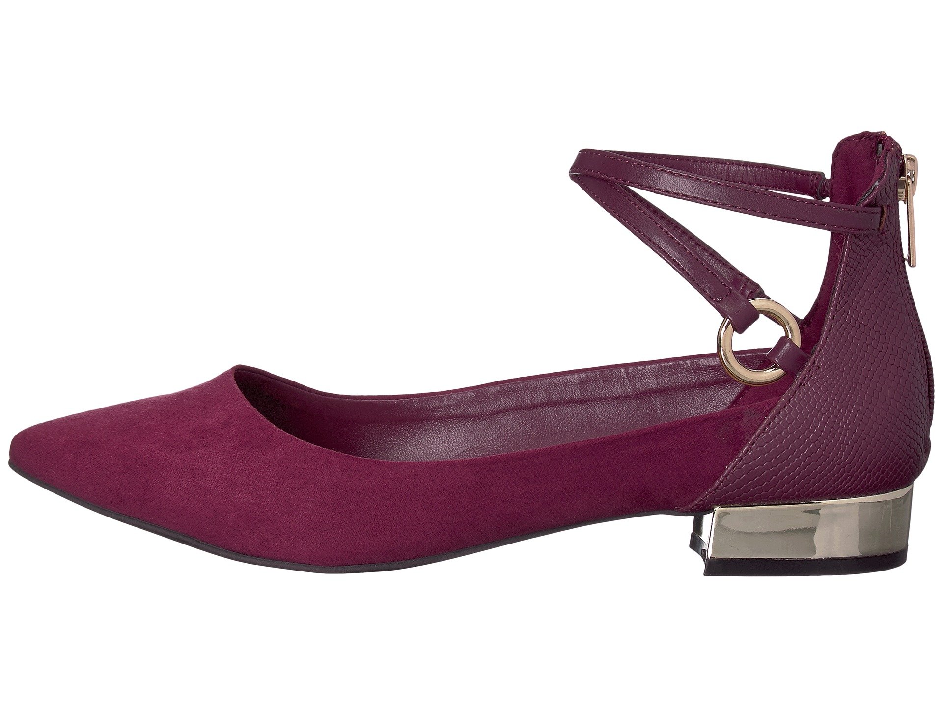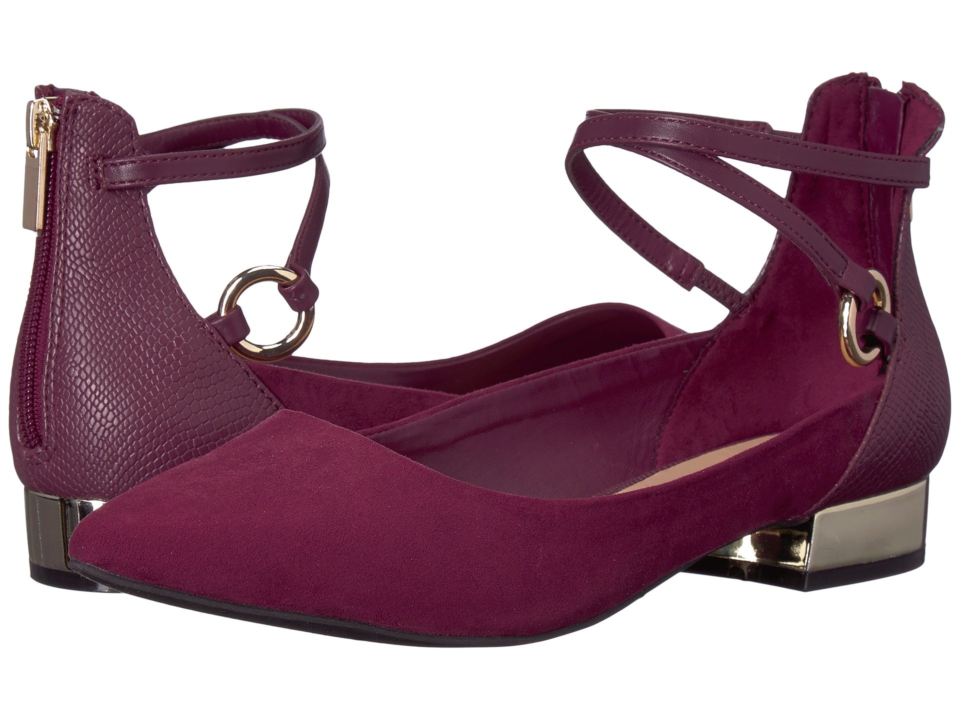 | Product Information SKU: #8968369Save the date for these fancy flats!Man-made upper.Strappy ankle with back zip closure.Pointed toe.Minimal, reflective heel.Man-made insole and lining.Man-made sole.Imported.Product measurements were taken using size 38.5 (US Women's 8), width B - Medium. Please note that measurements may vary by size.Weight of footwear is based on a single item, not a pair.Measurements: Heel Height: 1 in Weight: 7 oz |