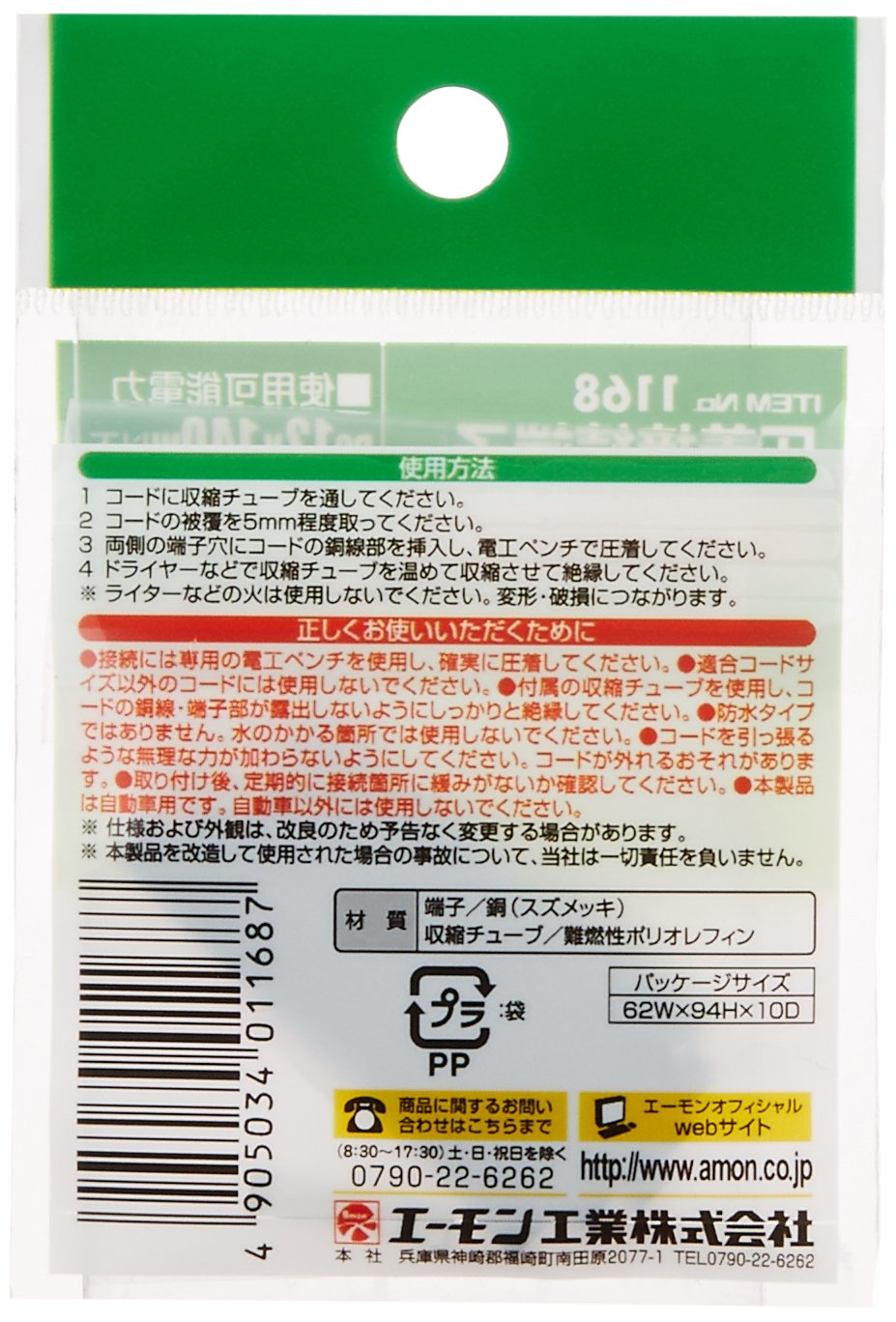 Amon 1168 crimp connecting terminal
