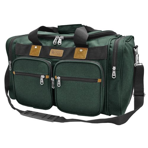 -. Brand : Western Pack -. Feature : 600HD Denier Polyester with PVC backing / Sturdy coil zippers / Removable padded shoulder strap / 7 Pockets for extra organization / Top straps are sewn and riveted for strength. Meets most carry-on requirements. -. ProductGroup : Apparel -. ProductTypeName : LAGE -. Title : Western Pack 2000 Series 18" Duffel Bag