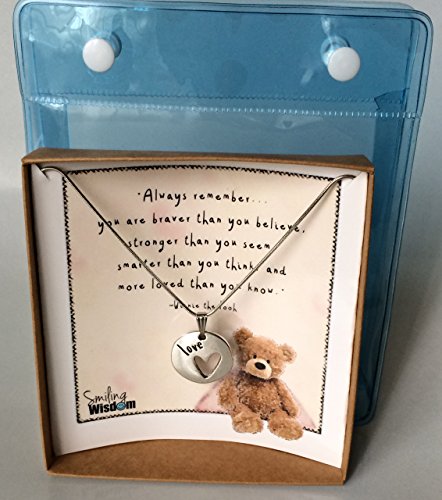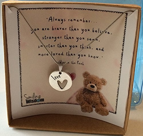 Smiling Wisdom - Winnie the Pooh Bear Heart Encouraging Quote Gift Set - 2017 Greeting Card & Double-Sided Love Heart Pendant Necklace for Grad, Daughter, Girls, Tween, Teens & Women - Summer Jewelry