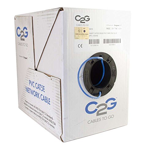 C2G/Cables To Go 56010 Cat5e Bulk Unshielded (UTP) Ethernet Network Cable with Solid Conductors - Riser CMR-Rated, Blue, 1000 Feet (Made in the USA)