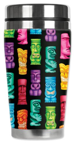 Mugzie Tikis Travel Mug with Insulated Wetsuit Cover, 16 oz, Black