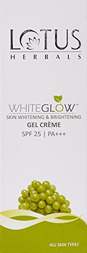 -. Feature : Lotus Herbals Skin Whitening & Brightening Gel Créme is enriched with Grape, Mulberry / Saxifraga extracts and Milk enzymes that are known fairness agents / A revolutionary formula that blends the benefits of a gel and a crème / It also contains sunscreens to protect the skin from harmful UVA&UVB rays that can darken the skin