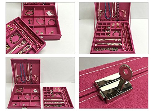 -. Feature : Made of medium density fiberboard and covered with soft lint,Color:Hot Pink / Two-layer and removable design provides more space, Earrings, rings, brackets, necklaces can be held / Easy to open, can be locked (comes with a key), It is a good gift for girls or women / Approximate Jewelry Box Dimensions (L x W x H): 10.2" x 10.2" x 3.2", Accessories not included / THE BEST CUSTOMER SERVICE & 100% WARRANTY - With our famous 100% satisfaction guarantee, you can have peace of mind. If for any reason you're not completely happy with your purchase- if it breaks, if it's damaged in shipping, or even if you change your mind - simply let us know and we will either replace it or refund your money, your choice!