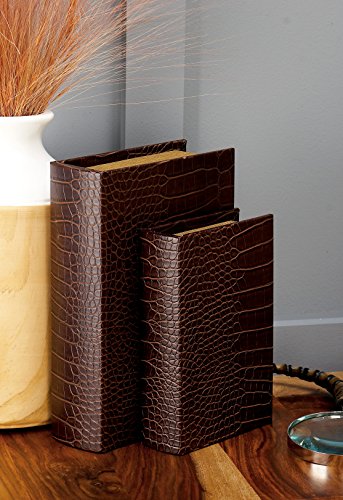 Deco 79 72133 Wood Leather Book Box Beautifully Carved