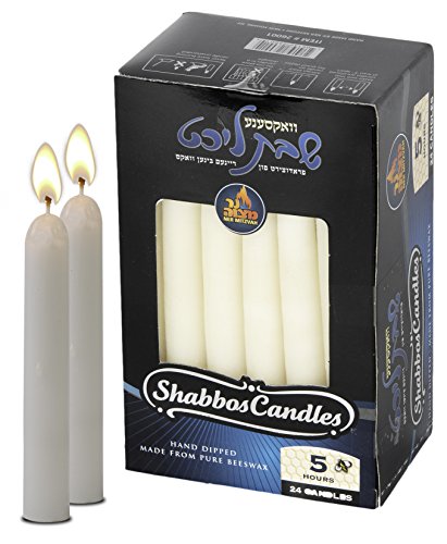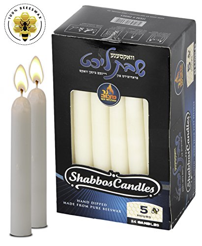 Studio : Ner Mitzvah Publisher : Ner Mitzvah Binding : Kitchen Product Description CRAFTED WITH QUALITYBask in the warm glow of candlelight without the unwanted effects of paraffin wax. These 100% pure beeswax candles are handmade individually hand-dipped. Braided cotton wicks easily catch the spark from your match and sustain a robust flame for a long-lasting burn. Our high quality beeswax melts evenly with minimal drip. A heating process lightens the amber-colored beeswax to an elegant ivory, perfect for use as Shabbat candles as well as other formal occasions.VERSATILE CANDLES FOR ANY OCCASIONBurning for approximately 5 hours, these beeswax candles have myriad uses:- Shabbos Yom Tov Candles- Church, Vigils other Religious Ceremonies - Chanuka Menorah- Weddings, Parties Celebrations- Restaurants Cafes- Yoga Studio or Spa- Emergency Candles during Power Outages BEESWAX IS BETTERThe material used to make candles matters for much more than aesthetic appeal.Our Beeswax Taper Candles allow you to:- Breathe easier: Keep your indoor air clean and relieve your lungs and sinuses with 100% pure beeswax candles free of the toxins in paraffin. Choose non-toxic to protect asthma sufferers and children.- Avoid pollution: Lead an eco-friendly lifestyle with beeswax, unlike paraffin that releases pollutants contaminants into the air.- Minimize mess: Our premium beeswax melts evenly slowly, dripping minimally without leaving behind the gunk buildup of paraffin.Try Ner Mitzvah candles today and let us light up your life! 0
