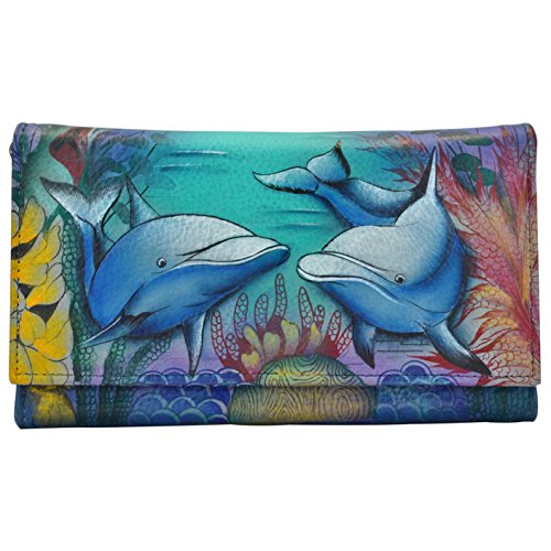 Studio : Anuschka Publisher : Anuschka Binding : Apparel Product Description It has a ?ap open entry with adjustable snap closure, three full-length pockets, one zippered pocket, thirteen card holders, two id windows, one pen loop and a rear zippered pocket. Comes with a removable checkbook cover with extra slit pocket, six card holders and one id window. 7.25”x4.25” 0