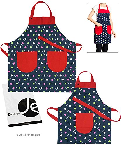 JAVOedge Polka Dots Mommy and Me Apron Cooking/Baking Apron with Pocket Great Gift to Mother and Daughter Matching Set