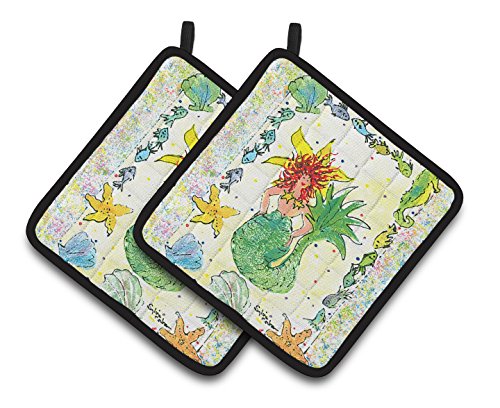 Caroline's Treasures Red Headed Funky Mermaid Pair of Pot Holders 8081PTHD, 7.5HX7.5W, Multicolor
