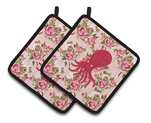 Caroline's Treasures BB1098-RS-PK-PTHD Octopus Shabby Chic Pink Roses Pot Holders (1 Pair), 7.5" x 7.5", Multicolor