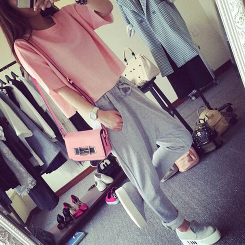 Brand Name: Batoneur Material: Cotton,Polyester Sleeve Length(cm): Half Closure Type: None Decoration: Pockets Collar: O-Neck Sleeve Style: Regular Pant Closure Type: Elastic Waist Dresses Length: Above Knee, Mini Clothing Length: Short Pattern Type: Solid Pant Length(cm): Ankle-Length Pants Style: Casual Gender: Women Style: Casual Gender: Women