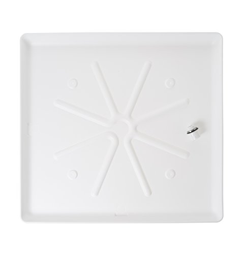 - Durable plastic pan that fits securely under the washer