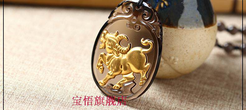 黑曜石吊坠护身符属牛人的开运吉祥物男女款