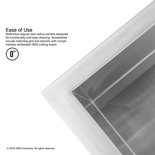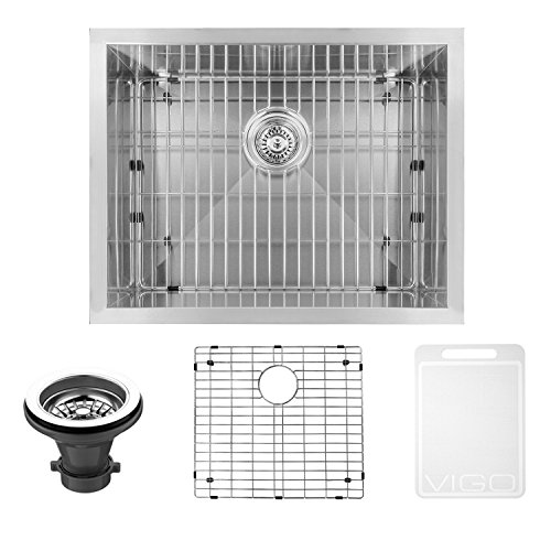 VIGO 23 inch Undermount Single Bowl 16 Gauge Stainless Steel Kitchen Sink with Grid and Strainer