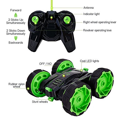 Full Functions: 180 degree flipping, 360 degree rotating, double sided rolling, 3D flip deformation, bright head LED light, freestyle stunt actions & strong climbing abilities