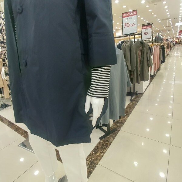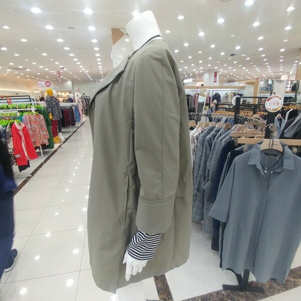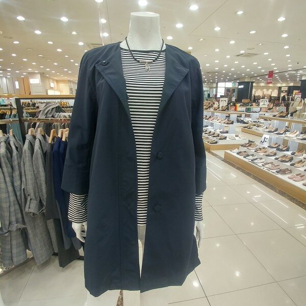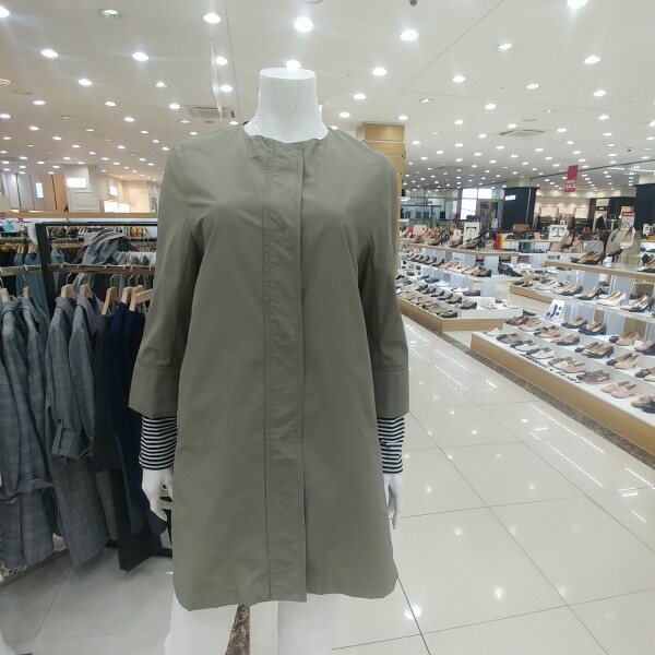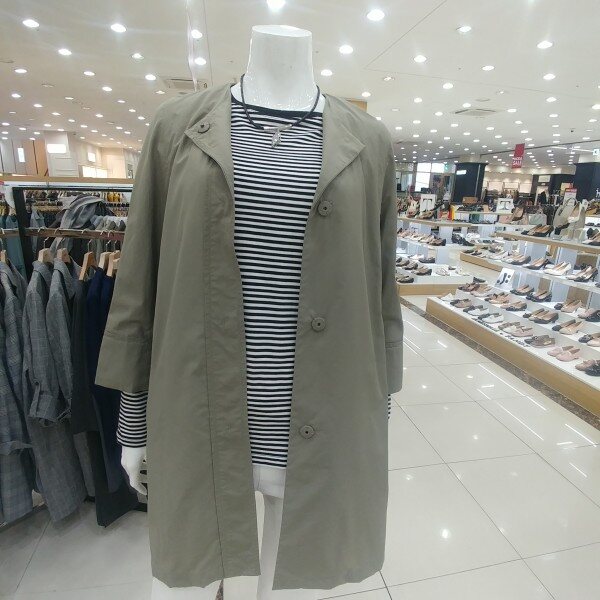 라운드카라에 박시형 홑겹트렌치이며 귀엽고 깔끔한스타일
