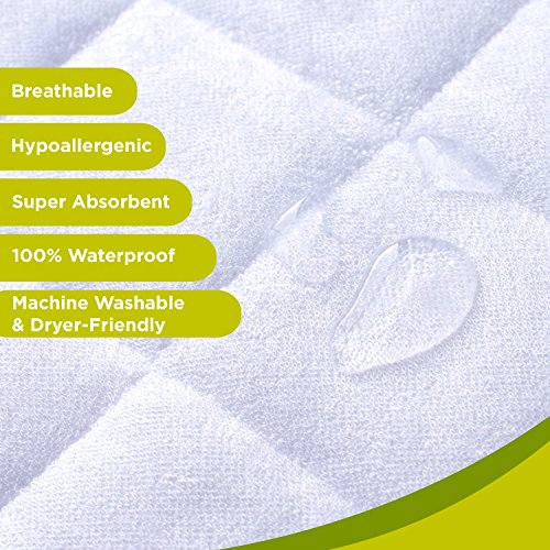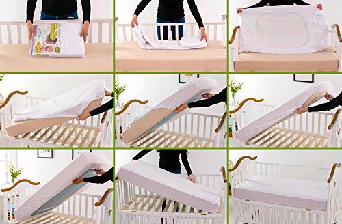 -. Title : Waterproof Bamboo Crib Mattress Cover/Pad/Protector | Hypoallergenic, Quilted, Stain Protection | Fitted Crib/Toddler Protective Mattress Cover (52x28 + 9-inch skirt) | Ultra-Soft Terry Fabric, White
