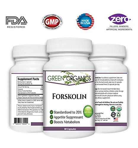 -. Feature : MOST POPULAR WEIGHT LOSS TREATMENT - More people seeking to lose weight are turning to Forskolin to achieve natural weight loss results. Here's why: / FASTER RESULTS reported from customers. In many cases, positive effects are observed within days. / LONG-TERM EFFECTS from our all natural formula which promotes a faster metabolism and suppressed appetite. / LIGHTNING IN A BOTTLE: Forskolin has been used for ages for everything from fat loss, to boosting sexual performance, and increasing energy Forskolin is found in the roots of an herbal plant from the mint family. Researchers have found that forskolin can help to promote the breakdown of stored fats in human fat cells that then aids with losing weight / HIGHEST QUALITY - Green Organics uses the highest grade of natural ingredients. All Green Organics supplements are manufactured in a USA GMP certified facility.