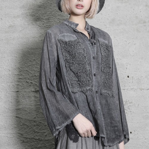 商品名:シャツ レディース ブラウス レース 個性的 ウォッシングカラー 春 2018 モード系 個性的 40代 ファッション