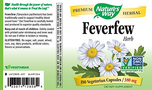 (Nature's Way)/Vitamins Dietary Supplements/Herbal Supplements/DIRECT FROM USA/Nature's Way Feverfew; 380 mg per serving; TRU-ID Certified; Non-GMO Project; Vegetarian; 180 V...
