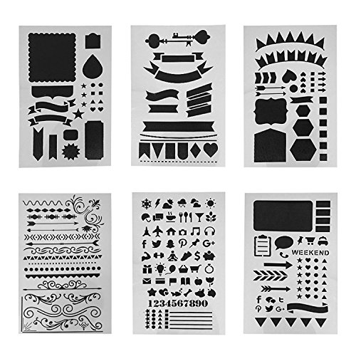 Diomate 6 Pack A5' Mylar Plastic Stencils for Drawing Graffiti /Notebook/Journal/Scrapbook DIY/Planner and Craft Projects