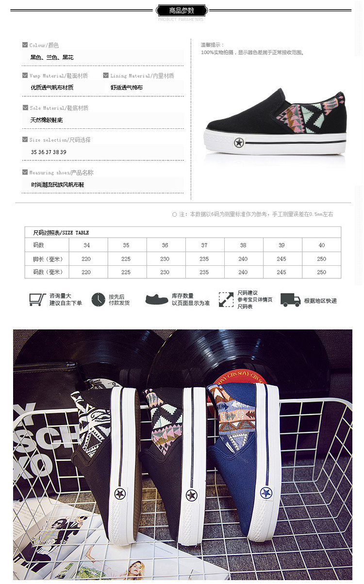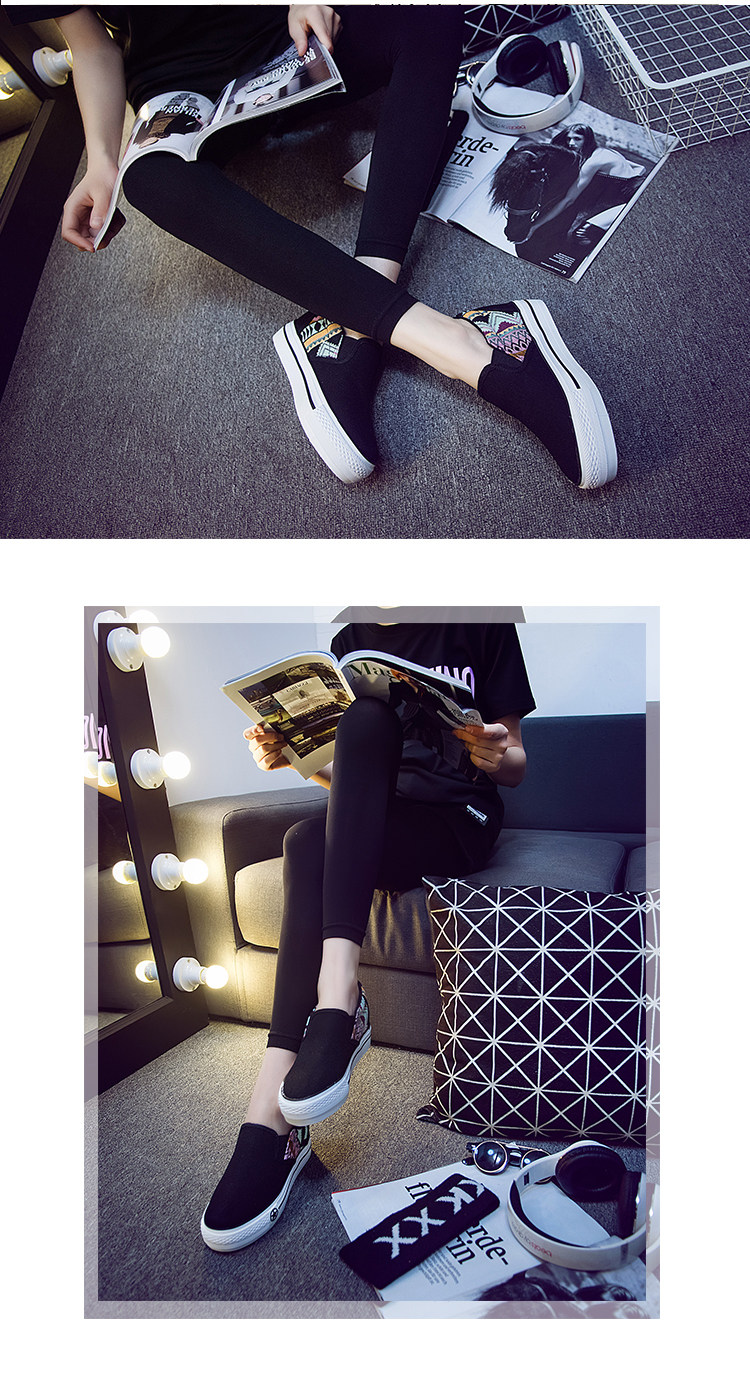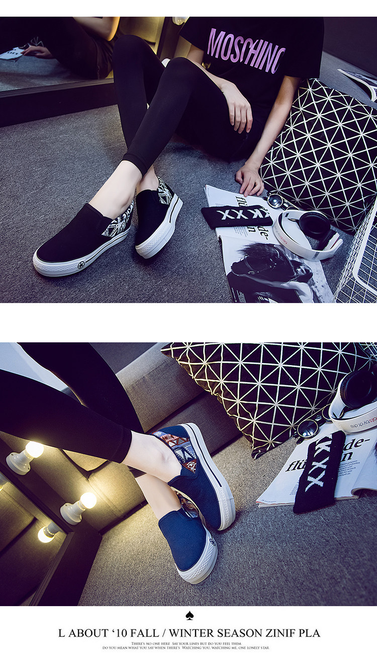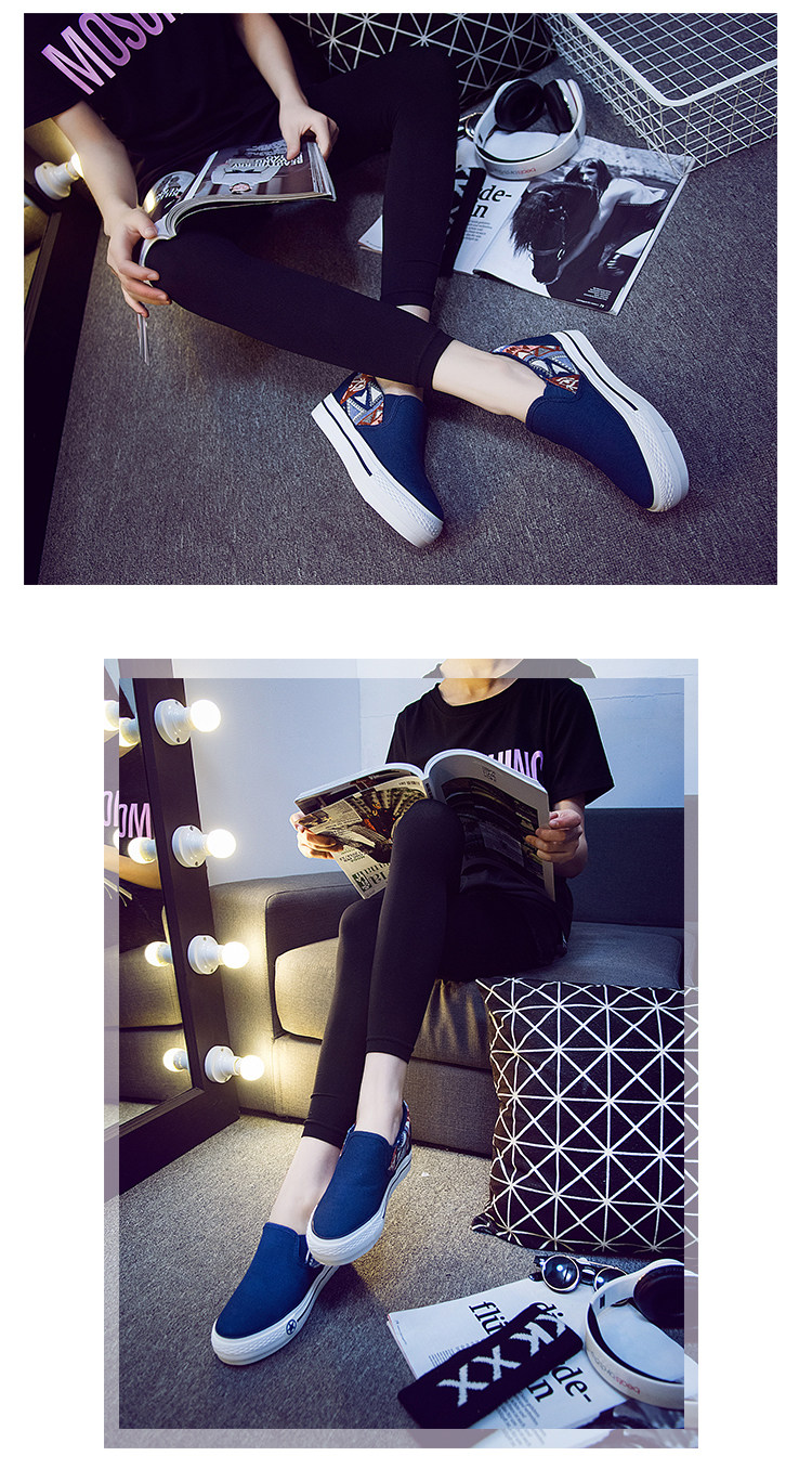 冬季新款内增高一脚蹬懒人鞋帆布鞋女学生韩版潮百搭平底布鞋