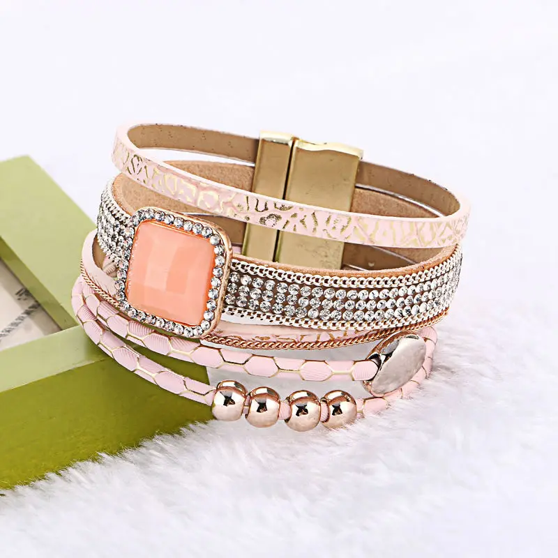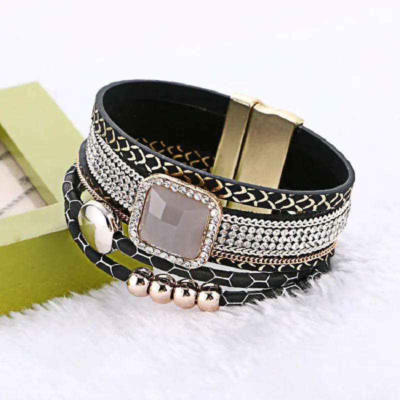 Magnetic Leather Bracelets:Bohemian bracelet