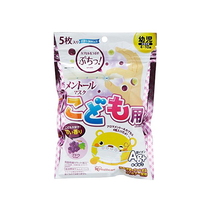 원본상품명: アイリスオ?ヤマ マスク メント?ル ぶどう こども用 5枚入り 個包? KON-5KB