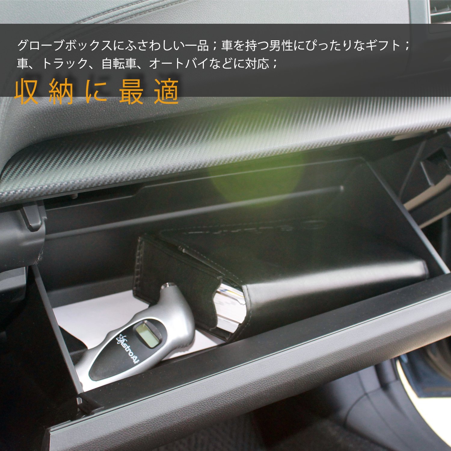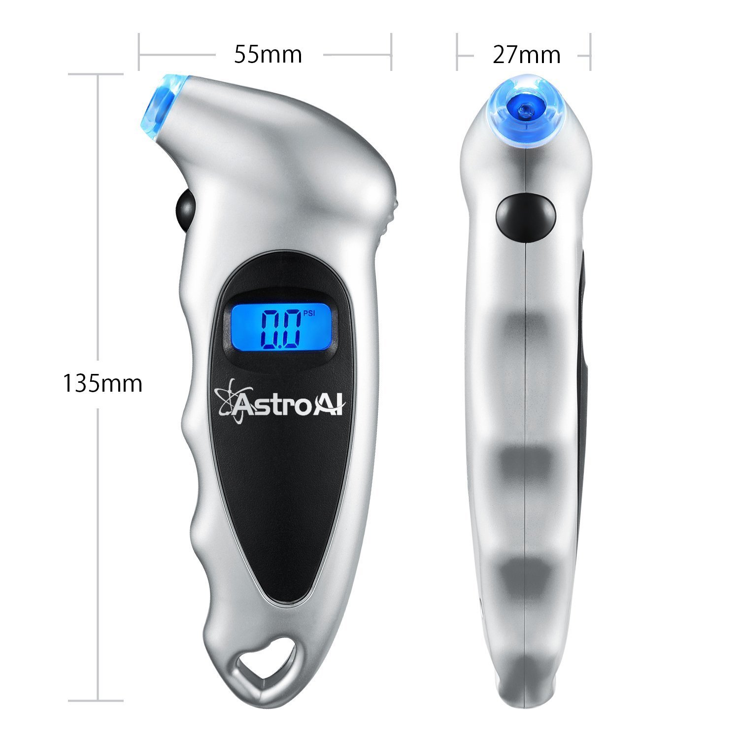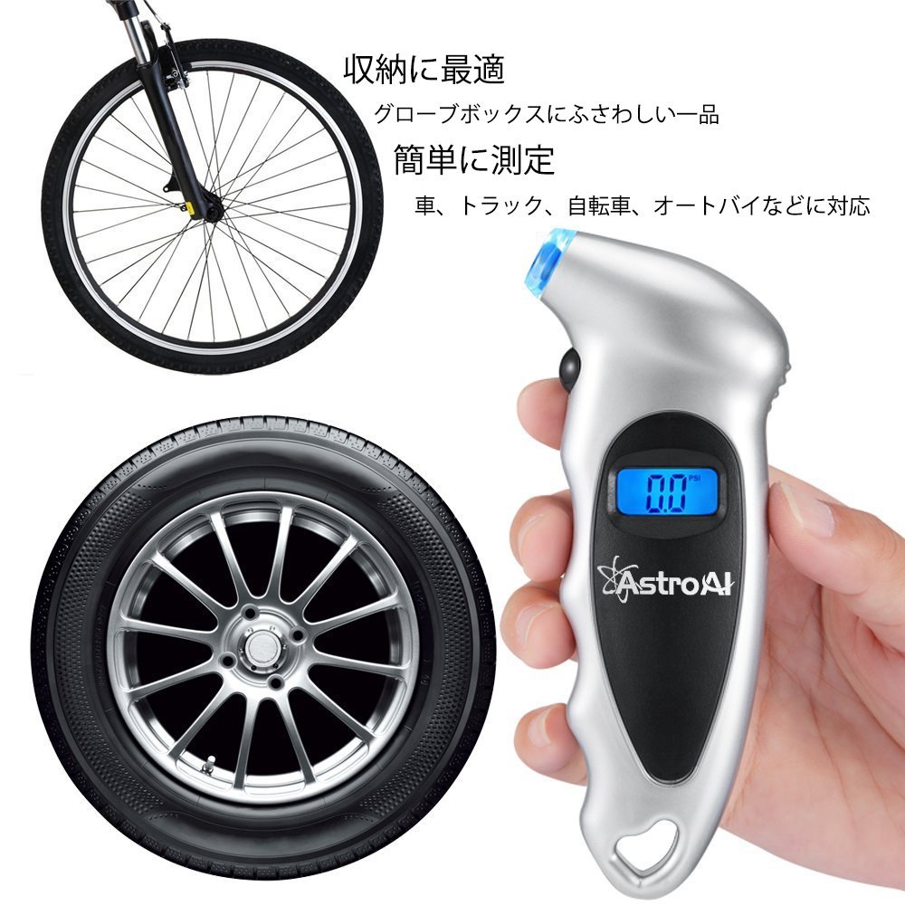 The stroAI digital tire gauge helps maintain proper tire pressure.